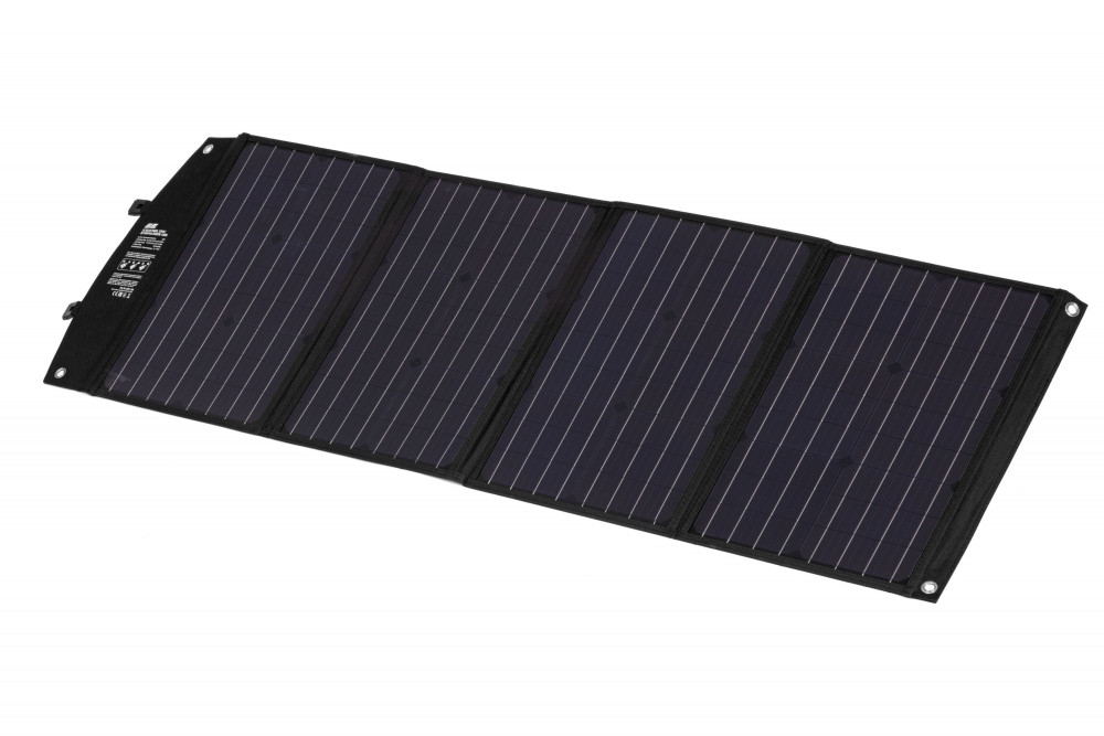 Панель має сумарну потужність 120 Вт і коефіцієнт конверсії ≥20 %. Для заряджання пристроїв передбачено розніми USB-A (24 Вт) і USB-C (18 Вт), а для підключення до електростанції є DC 18 В/6,6 A, 120 Вт (макс.). Панель виконана в чорному кольорі й має складану конструкцію, чим і зумовлена її мобільність. Повністю розгорнута сонячна панель має габарити 1 660 × 520 × 25 мм, а складена – 370 × 520 × 50 мм, її вага складає 4,7 кг. З огляду на те, що пристрій може застосовуватися в складних умовах, скажімо, у польових, конструкцією передбачено міцне руків’я, що забезпечує зручність під час перенесення. На додачу: у комплекті, крім кабелю 2 в 1, є також адаптери для різних завдань.