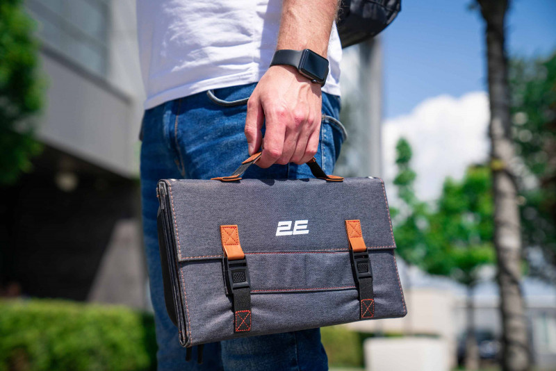 Портативна сонячна панель – один із пристроїв, що можуть суттєво полегшити життя в польових умовах, адже забезпечує можливість швидкого заряджання практично всіх USB-пристроїв, як-то смартфонів, камер, ноутбуків тощо, без прив’язки до генераторів, а просто під прямим сонячним промінням. До того ж конструкцією передбачено два отвори для кріплення до рюкзака чи інших поверхонь.