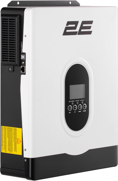 Ефективність інвертора становить 95 %, а це означає, що на власне обслуговування пристрій «забиратиме» мінімум енергії. Якщо йдеться про побутове використання, то пристрою такої потужності буде цілком достатньо, щоби заживити холодильник, котел, телевізор, пральну машину й забезпечити освітлення в оселі. Час перемикання варіюється залежно від типу пристроїв: 10 мс (для ПК) та 20 мс (побутова техніка). Наявні вбудований дисплей і кнопки для налаштування пріоритету заряджання або автоматичних режимів роботи, а також функції захисту для безпечного користування пристроєм. Щодо інтерфейсів: інвертор обладнано портами USB та RS-232. Також для пристрою доступний зовнішній модуль комунікації (2E-COMM-MOD2), який забезпечує контроль і доступ до інформації про роботу інвертора через мережу інтернет.