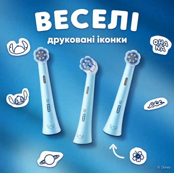 Набір зубних насадок для дітей Oral-B iO Kids Stitch RB SBLF-4 (4 шт.) із принтом "Stitch"