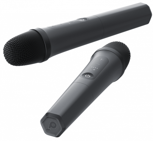 Подвійні бездротові мікрофони: Станьте власником будь-якого дуету завдяки кришталево чистому вокалу та вбудованим регуляторам гучності й видалення вокалу.