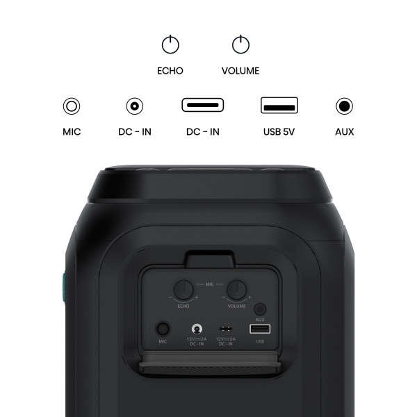 Благодаря общей выходной мощности 160 Вт (RMS) , колонка издает насыщенное, громкое и детализированное звучание, одинаково хорошо звучащее в закрытых помещениях и на открытом воздухе. Она уверенно озвучит большое пространство, создавая драйвовую атмосферу для танцев и пения.