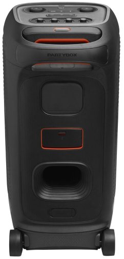 JBL PartyBox 520 — потужна портативна акустична система для вечірок із найвищим у серії рівнем гучності серед моделей на акумуляторі. Завдяки передовим технологіям, міцній конструкції та ефектним світловим шоу, вона ідеально підходить для великих заходів, вечірок на природі чи домашніх святкувань. Система забезпечує вихідну потужність 400 Вт, яка гарантує глибокий бас і чіткі високі частоти. Технологія AI Sound Boost аналізує аудіосигнал у реальному часі, оптимізуючи звук для максимальної потужності з мінімальними спотвореннями. Bluetooth 5.4 забезпечує якісне бездротове підключення, а Auracast дозволяє легко об’єднувати кілька JBL-сумісних колонок для створення стереозвуку або потужної аудіосистеми, що заповнює весь простір. Акустика має змінний акумулятор із часом роботи до 15 годин (залежно від гучності та контенту) і функцією швидкої зарядки FastCharge: 10 хвилин зарядки додають 2 години відтворення. Захист IPX4 робить її стійкою до бризок, що дозволяє використовувати колонку біля басейну чи на пляжі. Для підключення зовнішніх пристроїв передбачені USB-C, XLR-входи для мікрофона чи гітари, а також 3.5 мм AUX і Mic/Instrument In, що робить її придатною для караоке чи живих виступів. Система оснащена динамічним світловим шоу, яке синхронізується з музикою, із налаштуваннями через додаток JBL PartyBox App. Додаток також дозволяє керувати еквалайзером, музикою та іншими параметрами. Для зручності транспортування колонка має телескопічну ручку та посилені широкі колеса, що полегшують переміщення навіть на нерівних поверхнях. Корпус виготовлений із переробленого пластику, а упаковка — із FSC-сертифікованого паперу з соєвим чорнилом, що підкреслює екологічність продукту. PartyBox 520 у чорному кольорі має сучасний і міцний вигляд із матовим покриттям. Корпус із пластику виглядає стильно та витримує активне використання. Світлові ефекти додають яскравості, а компактні для такої потужності розміри роблять її зручною для транспортування. Панель керування розташована зверху для легкого доступу.