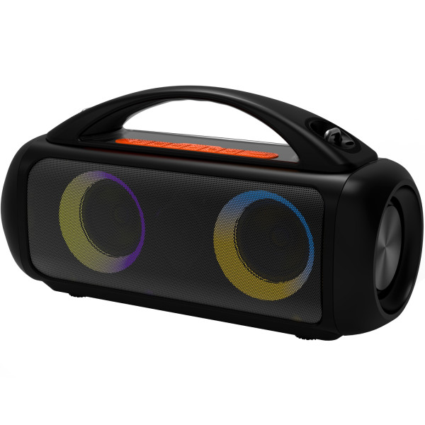 Конструкція акустичної системи з міцного пластику та уітальна його сторона — мобільність. А вага всього 3 кг у поєднанні зі зручною ручкою роблять транспортування легким і комфортним, що перетворює цю колонку на ідеального супутника для пікніків, пляжного відпочинку чи дружніх вечірок просто неба.