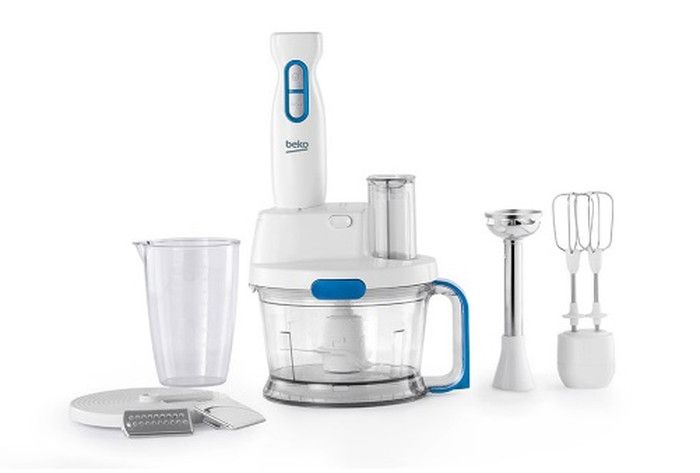 Тип: стационарный блендер; Мощность: 1000 Вт; Количество скоростей: 2 + турбо режым; Габариты (ВхШхГ): 39,5 x 19 x 24 mm; Чаша: 1,5 лит. / мерный стакан 0,9 лит.; Насадки: венчик для взбивания, блендер; Дополнительно: турборежим; Функции: измельчение , взбивание, терка, шинковка; Цвет: белый