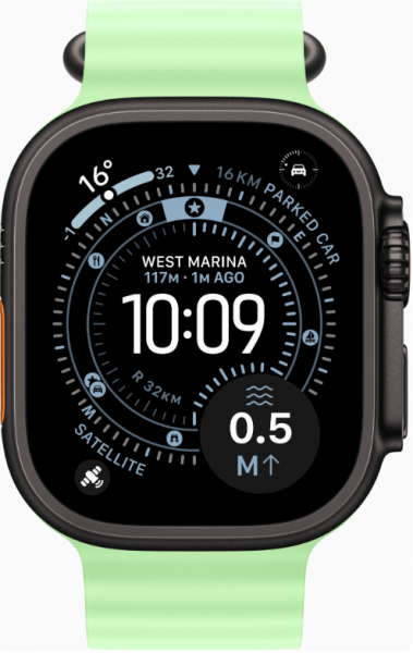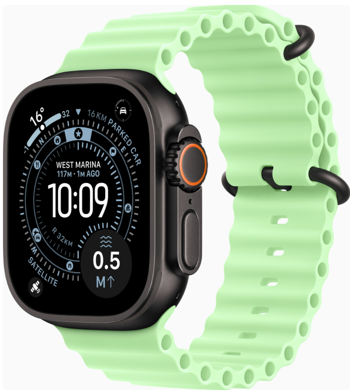 Apple Watch Ultra 3 має корпус із титану. Цей матеріал забезпечує легкість і надзвичайну міцність, що ідеально підходить для екстремальних умов. Завдяки ширококутному дисплею Retina, який завжди увімкнений і має яскравість до 3000 ніт, інформація залишається чіткою навіть під прямим сонячним світлом.