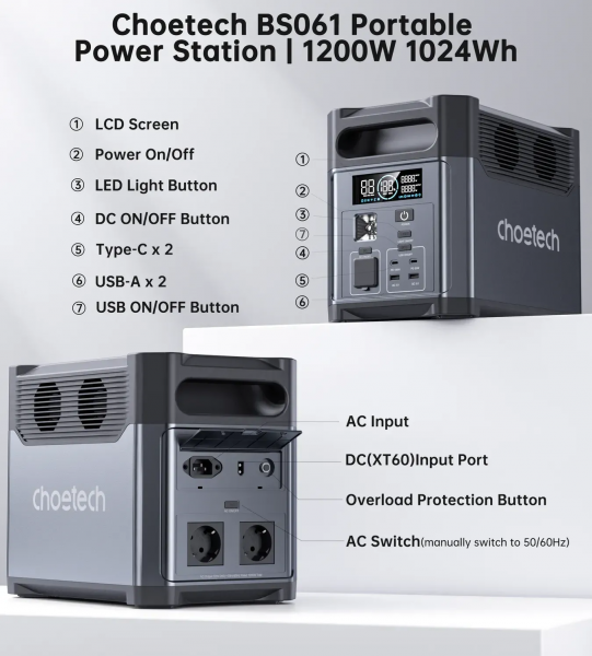 Отзывы о CHOETECH BS061-BQB / 1200 Вт / 1024 Вт⋅год / LiFePO4