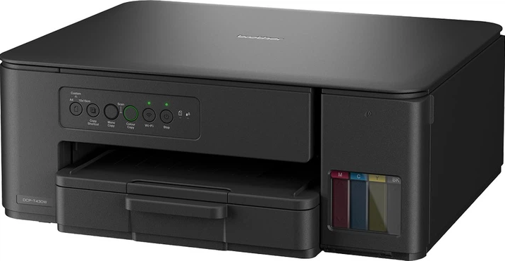 DCP-T430W — це компактний багатофункціональний пристрій «3 в 1», який дозволяє друкувати довше завдяки чорнильним флаконам надвисокої ємності. Заправка резервуарів відбувається швидко та легко, без необхідності постійно тримати флакони в руках, що робить заправку простою та чистою. А завдяки інноваційній системі закриття флаконів ви можете бути впевнені, що завжди заправляєте потрібний колір.