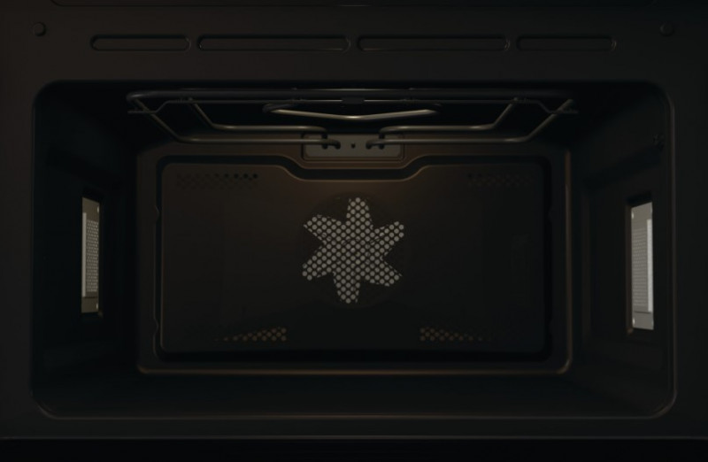 Розташована у верхній частині камери лопать рівномірно розподіляє мікрохвилі, що запобігає утворенню гарячих ділянок и гарантує рівномірне приготування. Тарілки, що обертаються, і нерівномірне нагрівання пішли в минуле.