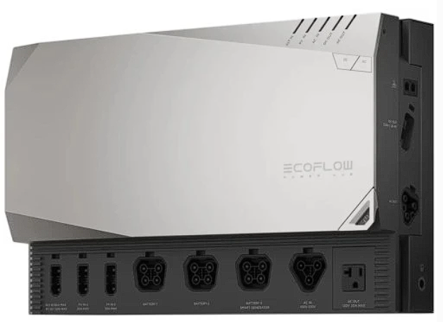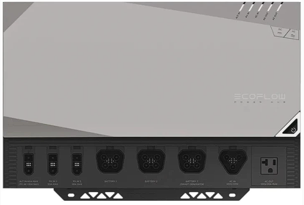 EcoFlow Power Hub, объединяет два солнечных контроллера заряда MPPT, зарядное устройство MPPT, понижающий преобразователь постоянного тока и инверторное зарядное устройство, что делает его чрезвычайно компактным. К EcoFlow Power Hub можно подключить к трем батареям по 2 или по 5 кВт/ч каждая.