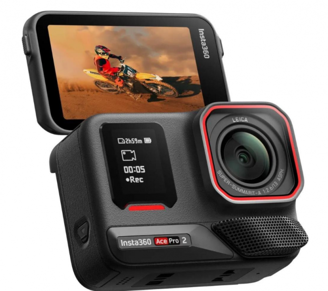 Insta360 Ace Pro 2 (CINSBBGA) - екшн-камера з 1/1,3-дюймовим сенсором і об'єктивом Leica Summarit з кутом огляду 157° і діафрагмою f/2.6. Пристрій здатний знімати відео з роздільною здатністю 8K за 30 кадрів на секунду, а також 4K за 60 кадрів на секунду з підтримкою технології Active HDR. Фото доступні з роздільною здатністю до 50 МП. Для поліпшення якості зйомки в темний час передбачено режим PureVideo. Камера оснащена 2,5-дюймовим сенсорним екраном із поворотним механізмом і роздільною здатністю 440×696 пікселів. Вбудована стабілізація FlowState і функція фіксації горизонту на 360° забезпечують чітку картинку під час руху. Підтримуються карти пам'яті microSD об'ємом до 1 ТБ. Модель може працювати під водою на глибині до 12 метрів без додаткового боксу і до 60 метрів з ним. Вага камери становить 177,2 грама. Ємність акумулятора - 1800 мА-год, заряджається через USB-C. Вбудовані мікрофони з шумозаглушенням і функцією захисту від вітру. Камера підтримує управління голосом і жестами, інтеграцію з додатками і модульну конструкцію з можливістю підключення додаткових аксесуарів.