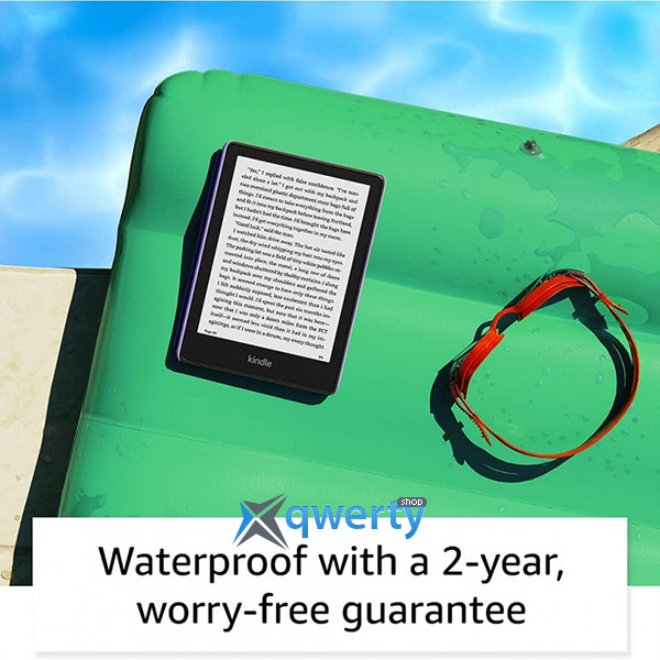 Kindle Paperwhite Kids является водонепроницаемым (класс защиты IPX8) и прошел лабораторные испытания для защиты от случайного погружения в пресную воду на глубину до двух метров на срок до 60 минут и на глубину 0,25 метра на 3 минуты в морскую воду.