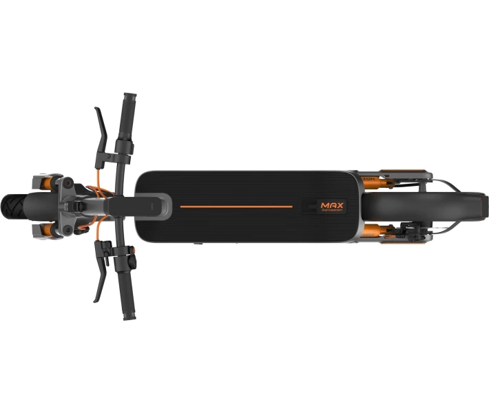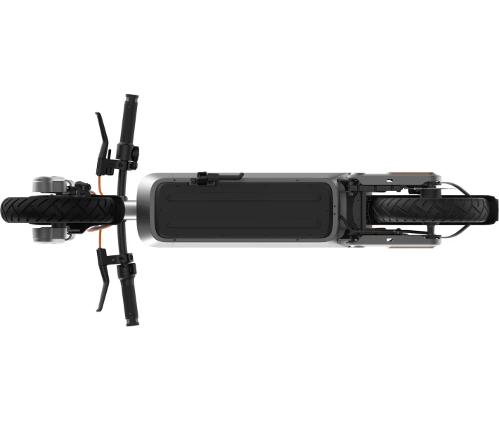 Розширена палуба забезпечує додатковий простір і зручність під час руху, а низький центр ваги в поєднанні з дорожнім просвітом 110 мм підвищують стійкість на різних покриттях. Широкий руль 606,6 мм робить керування більш надійним і точним, дозволяючи тобі впевнено контролювати траєкторію. Каркас самоката виконаний із армованої високоміцної вуглецевої сталі й витримує навантаження до 130 кг, що гарантує довговічність і стабільність конструкції. Скутер має рейтинг водонепроникності IPX6, дозволяючи здійснювати поїздки навіть у несприятливих погодних умовах.
