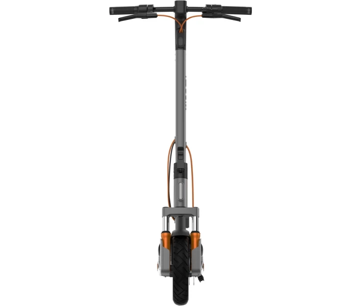 Передня підвіска електросамоката оснащена вилочною пружиною з ходом 45 мм для підвищення комфорту під час їзди нерівними дорогами. Конструкція використовує двоступеневі пружини різної жорсткості: м’яка частина ефективно гасить дрібні вібрації, а більш жорстка зберігає стійкість при різких маневрах і на складних ділянках. Задня частина доповнена подвійною пружиною, яка рівномірно розподіляє навантаження й підвищує безпеку руху. Збалансоване поєднання м’якості та контролю дозволяє впевнено долати пересічену місцевість і зберігати стабільність керування навіть у динамічних умовах.