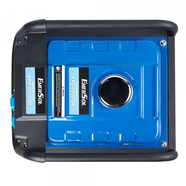EnerSol EPG-5500IOE – бензиновий інверторний генератор з однофазним виводом напруги 230 В та частотою 50 Гц, де номінальна потужність сягає 5 кВт, а максимальна – 5,5 кВт з коефіцієнтом потужності 1. Двигун GP236 чотиритактний з одним циліндром об'ємом 236 см³ та потужністю 5,97 кВт обертається на 3000 об/хв, забезпечуючи номінальний струм 22,7 А змінного та 8,3 А постійного. Об'єм мастила в картері – 0,6 л, паливний бак – 7 л з витратою 0,35 л/кВт·год, охолодження повітряне в відкритому виконанні з захистом IP23. Електростартер полегшує запуск, дві розетки по 16 А з заглушками слугують для підключення, інфо-дисплей відображає напругу та мотогодини, шум не перевищує 63 дБ на відстані 7 м. Габарити становлять 440x380x460 мм при вазі 28 кг, що сприяє мобільності.
