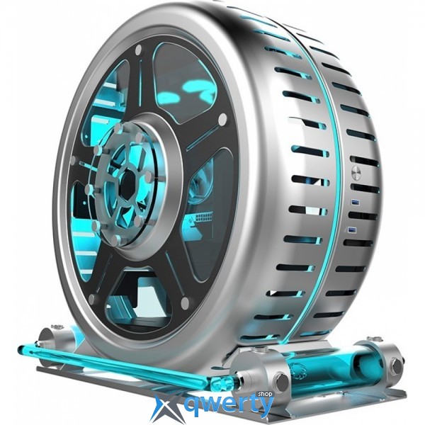 Hot Wheels от GameMax — это современный необычный корпус который отличается от других корпусов тем что имеет форму колеса! Корпус изготовлен из дюралюминий толщиной 2 мм и обладает основательной металлической подставкой с креплениями для резервуаров, из-за чего вес корпуса достигает порядка 11 кг.