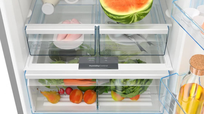 Простора система VitaFresh XXL забезпечує багато місця та ідеальне середовище для зберігання всіх свіжих продуктів завдяки контролю температури та клімату. Риба та м’ясо залишаються свіжими довше при температурі близько 0°C. Фрукти й овочі зберігаються краще завдяки оптимізованому мікроклімату. Більше продуктів для задоволення — менше харчових відходів.