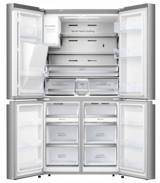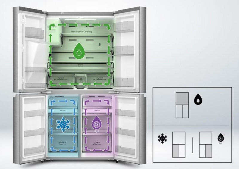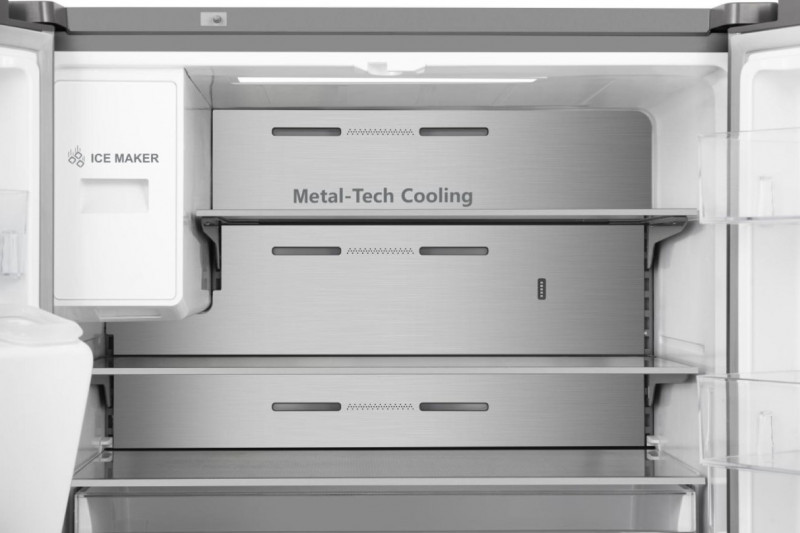 Задня стінка холодильника вкрита нержавіючою сталлю, що забезпечує рівномірний розподіл холодного повітря зсередини. Це поєднання передових технологій завжди забезпечує ідеальний рівень температури й вологості.