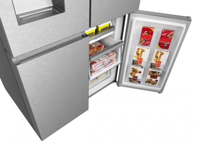Цей дуже зручний вбудований дозатор для льоду та води може виробляти 2,2 літра льоду на день для всієї сім’ї. Ви зможете вибирати потрібний вам режим (кубики, подрібнений лід або охолоджена вода) у будь-який момент, не відчиняючи дверцята холодильника. Насолоджуйтеся прохолодними напоями без зайвих турбот.