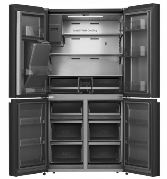 Задня стінка холодильника вкрита нержавіючою сталлю, що забезпечує рівномірний розподіл холодного повітря зсередини. Це поєднання передових технологій завжди забезпечує ідеальний рівень температури й вологості