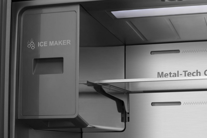 Цей дуже зручний вбудований дозатор для льоду та води може виробляти 2,2 літра льоду на день для всієї сім’ї. Ви зможете вибирати потрібний вам режим (кубики, подрібнений лід або охолоджена вода) у будь-який момент, не відчиняючи дверцята холодильника. Насолоджуйтеся прохолодними напоями без зайвих турбот.