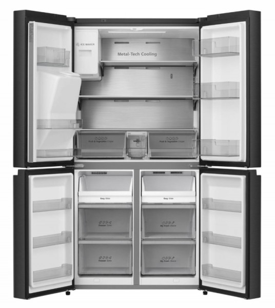 Задня стінка холодильника вкрита нержавіючою сталлю, що забезпечує рівномірний розподіл холодного повітря зсередини. Це поєднання передових технологій завжди забезпечує ідеальний рівень температури й вологості.