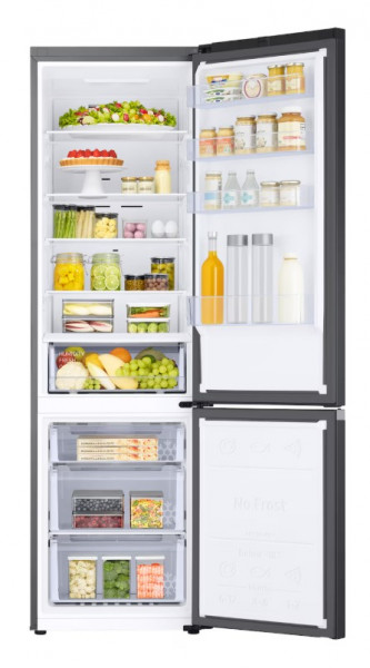 Технологія No Frost від Samsung забезпечує постійну циркуляцію холодного повітря, систематично видаляючи зайву вологу з внутрішньої частини холодильника. Це запобігає утворенню льоду та інею на стінках або на продуктах. Продукти довше зберігають свою свіжість та поживну цінність, а миття стає легшим — розморожування не потрібне.