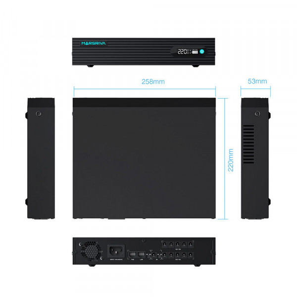 Переключение ИБП Marsiva Smart Mini UPS KP7 на автономную работу производится мгновенно. Надежный аккумулятор емкостью 17600 мАч может питаться одновременно до 11 устройств с максимальной выходной мощностью до 60 Вт.