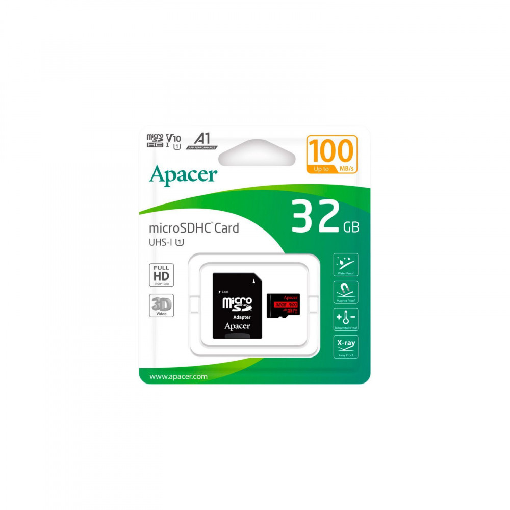 Карта пам'яті Apacer 32GB microSD Class 10 UHS-I V10 A1 (AP32GMCSH10UB-RA) — це оптимальне рішення для зберігання ваших важливих даних. Завдяки об'єму пам'яті у 32 ГБ ви з легкістю зможете зберігати безліч фото, відео та додатків, не турбуючись про вільний простір.