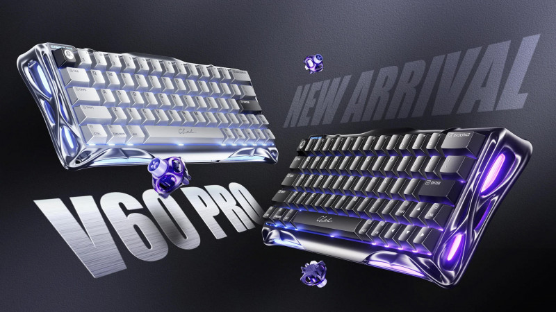 Mercury V60 Pro виконана в компактному 60% форматі, що залишає більше простору на столі, зберігаючи всі необхідні клавіші для геймінгу. Корпус з алюмінієвого сплаву 6063, оброблений ЧПК, забезпечує високу жорсткість і стійкість до навантажень. Перемикачі UFO Magnetic працюють без фізичного контакту завдяки ефекту Холла, що усуває знос і подвоєння натискань, а ресурс сягає понад 100 мільйонів циклів. Технологія Rapid Trigger миттєво скидає клавішу при русі вгору, що полегшує контр-страфінг і швидкі повторні натискання. Додатково впроваджено пріоритет останньої клавіші та режим Snap Click для чіткого тактильного відчуття.