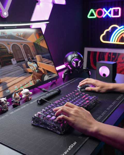 Mercury V75 Lite виконана в 75% форматі з повноцінним набором функціональних клавіш, включаючи стрілки та рядок F, що робить її зручною для щоденного використання. Прозорий корпус з преміального пластику відкриває вид на внутрішні компоненти та підсилює ефект RGB-підсвітки. Перемикачі Blackcore на базі ефекту Холла працюють без механічного контакту, що усуває знос і забезпечує ресурс понад 100 мільйонів натискань. Технологія Dynamic Rapid Trigger динамічно регулює точки активації та деактивації залежно від реального ходу клавіші, що полегшує швидкі повторні натискання. Додатково впроваджено пріоритет останньої клавіші та функцію Snap Click для чіткого тактильного відгуку.