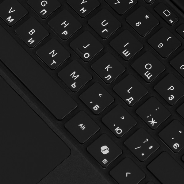Ця портативна клавіатура має повний механічний набір клавіш, клавіші з підсвічуванням, ідеальну відстань між клавішами та велику скляну сенсорну панель для точного керування та навігації.
