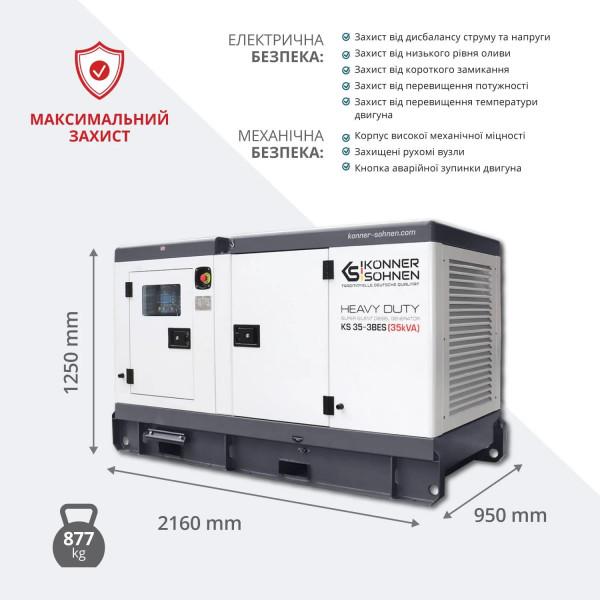 Отзывы о Konner&Sohnen KS 35-3BES, 230/400В, 35/32кВА, 3 фази, передстартовий підігрів, ATS, IP54, двигун Baudouin, 877кг