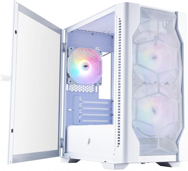 Корпус 1stPlayer D4-M-WH-2F1P-W-1F1-W — це компактний ігровий Midi-Tower, який ідеально підходить для створення стильної та ефективної збірки на базі материнських плат Micro-ATX або Mini-ITX. Його лаконічний дизайн з передньою металевою сітчастою панеллю забезпечує відмінний приплив холодного повітря, а бокова панель із загартованого скла відкриває повний огляд комплектуючих та RGB-підсвічування.