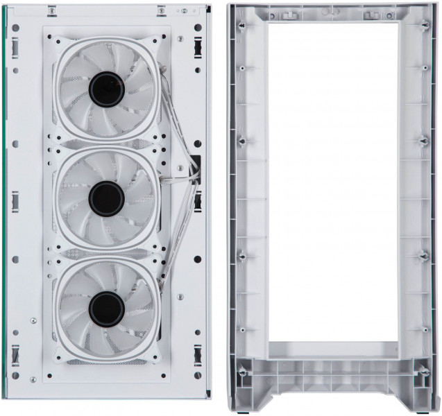 Особливістю моделі є дві змінні передні панелі в комплекті — базова із загартованого скла для демонстрації підсвічування компонентів і вентиляторів, та металева сітчаста панель для тих, хто обирає пріоритет охолодження. Така гнучкість дозволяє адаптувати зовнішній вигляд і продуктивність корпусу під індивідуальні потреби користувача.