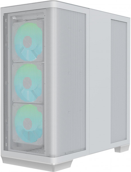 Сітчасті панелі та вигнуті краї забезпечують потужний повітряний потік і преміальний вигляд. Швидкознімні панелі полегшують складання, а підтримка материнських плат із задніми роз’ємами мінімізує видимість кабелів. Вентилятори та концентратор створюють ефективне охолодження й настроювані світлові ефекти. Корпус підходить для великих відеокарт і складних систем охолодження, що робить його гнучким для апгрейдів.