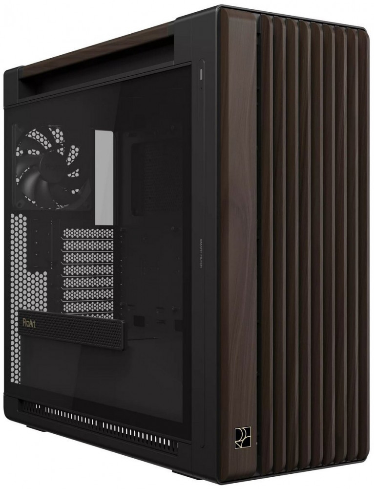 ProArt PA602 Wood Edition Modern Black від ASUS — це корпус Mid-Tower, який виділяється серед усіх конкурентів завдяки справжній деревині горіха на та продуманій системі вентиляції.