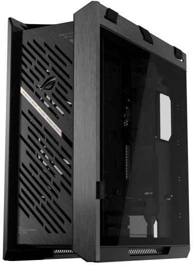 ASUS ROG Strix Helios II — це преміальний корпус формату Mid-Tower для ігрових ПК. Він оснащений двома бічними панелями із загартованого скла товщиною 4 мм, елегантною алюмінієвою рамою та фронтальною панеллю з діамантовим візерунком, виготовленою на високоточних верстатах із подальшим анодуванням. Діагональні отвори на передній частині навіяні естетикою стрімких болідів, а округлі краї, обтічний силует і приховані стики надають корпусу особливо витонченого вигляду.