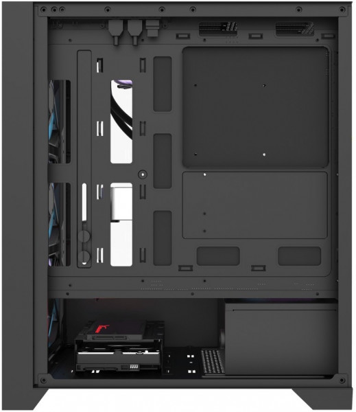 Місця вистачає з запасом: підтримує материнські плати до E-ATX, відеокарти довжиною до 350 мм, процесорні кулери висотою до 180 мм і СРО радіатори до 280 зверху чи 120 мм ззаду. Усередині — продуманий кабель-менеджмент з глибоким відсіком за материнською платою та канали для ідеального порядку. Блок живлення буде ховатися в нижньому кожусі з окремим вентиляційним каналом.