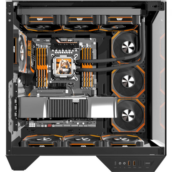 Скляні панелі відкривають огляд майже на 330°, тож система виглядає ефектно з будь-якого кута. Це особливо цінно для збірок із підсвічуванням, де важливе не лише світло, а й чистота ліній, симетрія та акуратність розміщення компонентів.