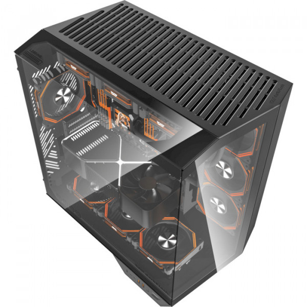 Корпус підтримує встановлення до десяти 120-мм вентиляторів або двох радіаторів СРО розміром до 360 мм. Це дає змогу зібрати систему з потужним процесором і продуктивною відеокартою, зберігаючи стабільні температури навіть під тривалим навантаженням — у сучасних іграх, під час рендерингу чи стримінгу.