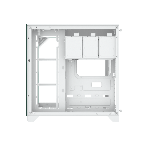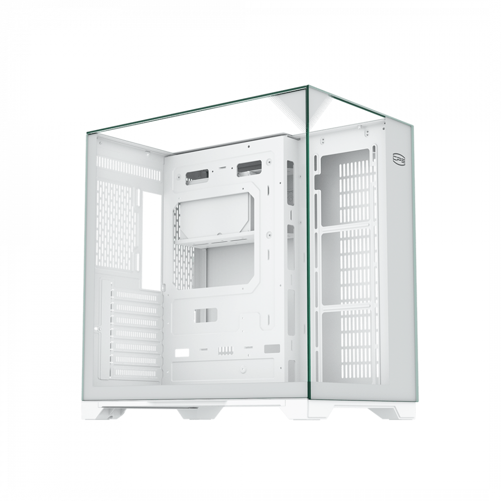 PCCOOLER C3 M500 — це унікальний корпус-вітрина, який пропонує панорамний огляд компонентів з трьох сторін: спереду, збоку та зверху. Це рідкісне дизайнерське рішення, де скляна верхня панель замінює традиційну перфорацію, перетворюючи комп'ютер на закритий скляний моноліт. Корпус спроектований за концепцією «безмежного огляду»:
