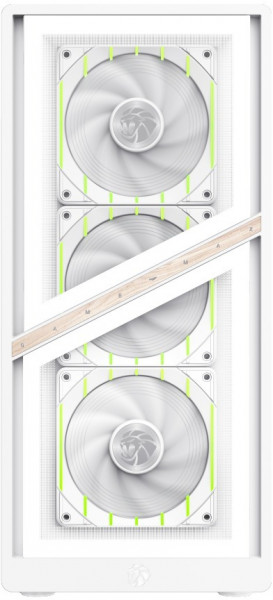 Корпус оснащений потужною системою охолодження: вже з коробки встановлено чотири 120-мм вентилятори з ARGB-підсвіткою та PWM-керуванням, а загалом можна розмістити до восьми вентиляторів такого розміру. Підтримуються радіатори водяного охолодження до 360 мм спереду, 240 мм зверху та 120 мм ззаду. Висота процесорного кулера може сягати 155 мм, а довжина відеокарти — до 330 мм, що дозволяє збирати продуктивні ігрові системи.