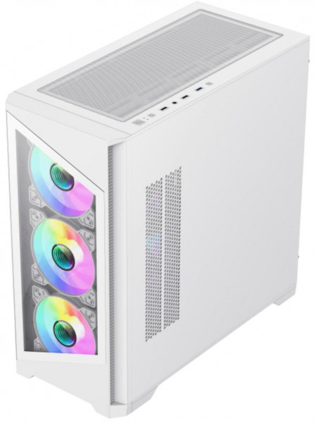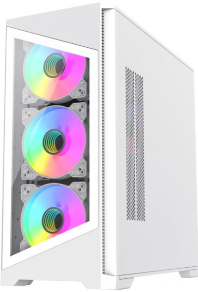 Дизайн виробу виконаний у класичному білому кольорі із застосуванням прозорих панелей. Завдяки підсвітці корпус виглядає яскраво - він чудово підкреслить ігрову зону та хобі власника. Виріб оснащений 120-міліметровими вентиляторами, які будуть виконувати функцію оптимізації повітряного потоку та дозволять уникнути перегрівання системи. Просторий корпус оснащений усіма необхідними інтерфейсами для зручного підключення периферійних пристроїв, гаджетів та накопичувачів.