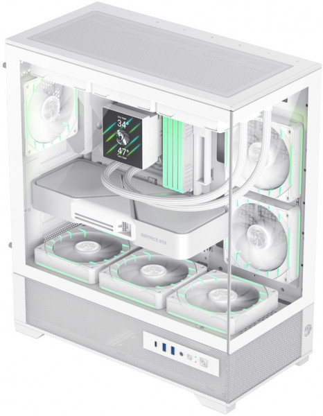 Gamemax Vista 2 створений для геймерів, які цінують панорамний огляд внутрішніх компонентів та ефективну роботу системи. Завдяки 270° загартованого скла спереду та зліва ви завжди бачите внутрішню частину корпуса, що додає естетики та дозволяє демонструвати компоненти.