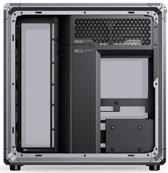 Внутрішній простір оптимізований для повнорозмірних комплектуючих: підтримує материнські плати ATX, microATX та mini-ITX, відеокарти довжиною до 427 мм, процесорні кулери висотою до 176 мм і блоки живлення до 220 мм. Нижнє розміщення блоку живлення сприяє кращому охолодженню та ефективній циркуляції повітря. Просунута система кабель-менеджменту допомагає акуратно організувати дроти, зберігаючи охайний вигляд усередині навіть при складних конфігураціях.