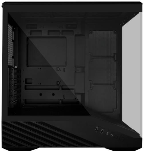 Простір для відеокарт до 420 мм із встановленим кронштейном проти провисання GB-001 гарантує надійність навіть для потужних графічних адаптерів. Продумана система керування кабелями з окремою передньою камерою забезпечує охайний вигляд і спрощує складання. Фронтальна панель оснащена портами USB 3.0 Type-A та USB 3.1 Type-C, аудіороз’ємами та кнопками керування, інтегрованими для зручного доступу.