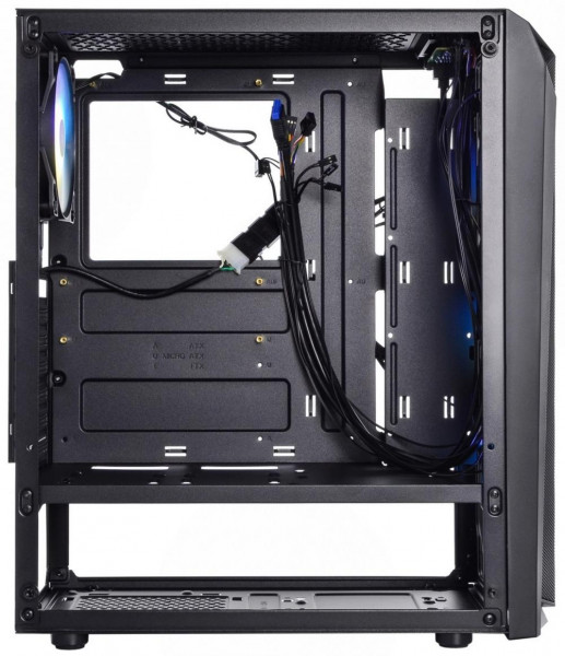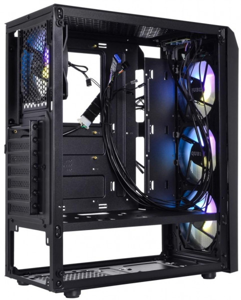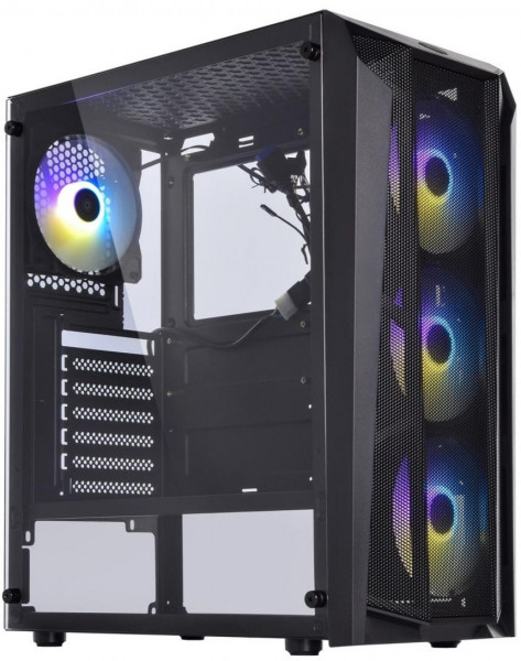 У комплекті вже встановлено чотири 120-мм ARGB-вентилятори: три на передній панелі та один на задній. Це забезпечує ефективний приплив і відведення повітря. Додатково можна встановити ще два 120-мм вентилятори зверху або радіатор рідинного охолодження 240 мм спереду.