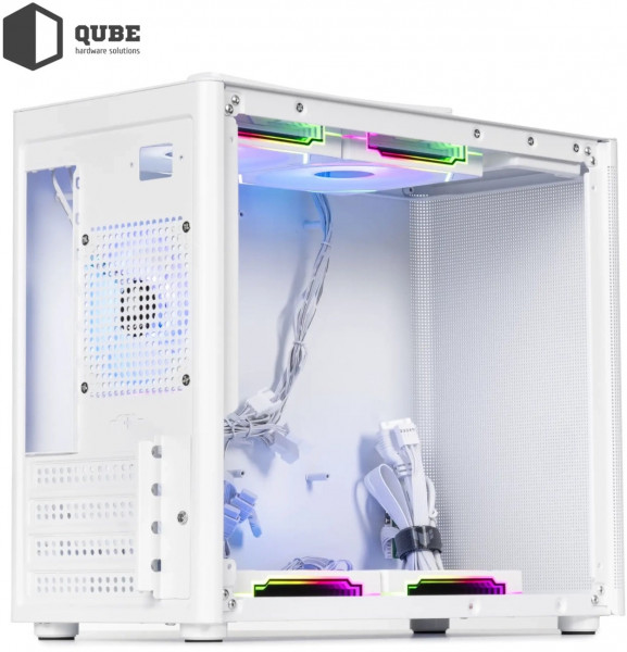 Qube Bring — це компактний mATX корпус формфактора Mini Tower, призначений для геймерів та ентузіастів, які прагнуть поєднати стильний дизайн з ефективним охолодженням в обмеженому просторі. Він створений для оптимального охолодження та яскравої демонстрації вашої збірки. Повністю сітчаста передня панель у поєднанні з ARGB-вентиляторами забезпечує відмінний потік повітря та ефектне підсвічування. Преміальне загартоване скло з посиленими кріпленнями гарантує безпеку та зручний доступ до компонентів.