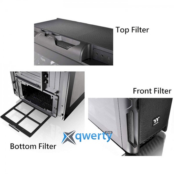 Спереди и сверху Level 20 RS ARGB комплектуется двумя съемными пылевыми фильтрами супер тонкой очистки. В нижней части установлен стандартный выдвижной фильтр. Это помогает минимизировать появление на поверхности комплектующих пыли, что кроме эстетической красоты, увеличивает срок их службы. Фильтры удобно снимать для чистки благодаря специальным магнитным полоскам.